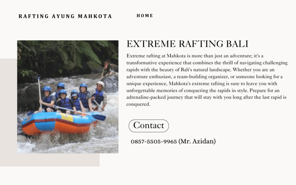 Extreme rafting at Mahkota is more than just an adventure; it’s a transformative experience that combines the thrill of navigating challenging rapids with the beauty of Bali’s natural landscape. Whether you are an adventure enthusiast, a team-building organizer, or someone looking for a unique experience, Mahkota’s extreme rafting is sure to leave you with unforgettable memories of conquering the rapids in style. Prepare for an adrenaline-packed journey that will stay with you long after the last rapid is conquered.