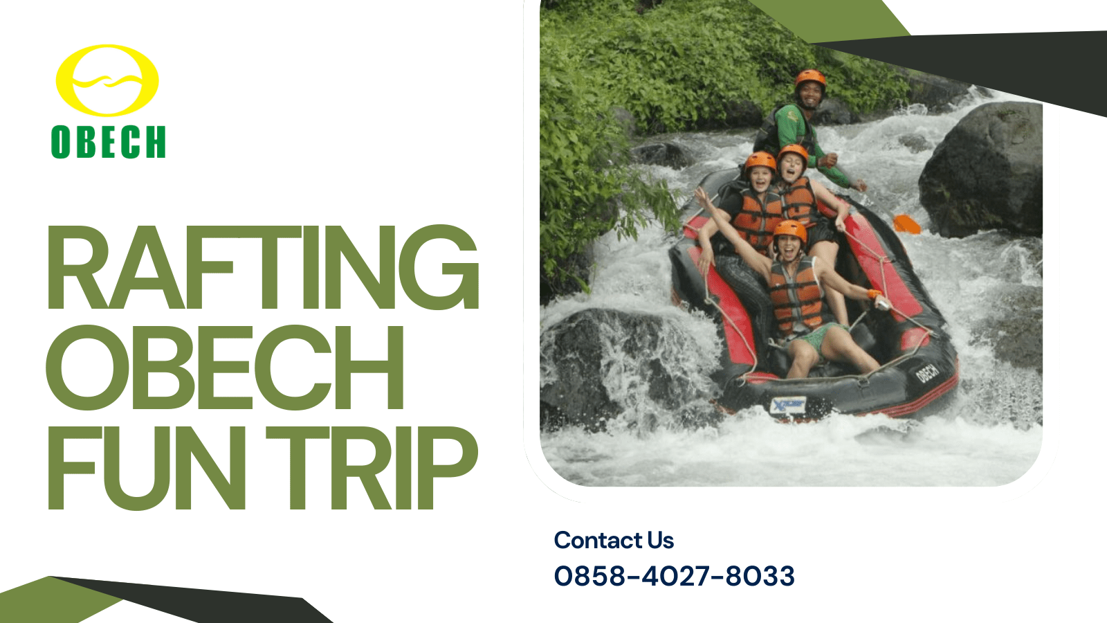 Segera rencanakan liburan Anda bersama teman, keluarga, atau komunitas, dan nikmati keseruan rafting Pacet Mojokerto hanya di Rafting Obech. Untuk informasi lebih lanjut dan pemesanan paket, hubungi kontak yang tersedia.